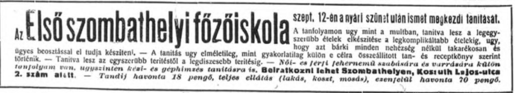 A 20-as években azonban virágzik a vendéglátás az épületben, amire ékes példa a Horváth-féle kávéház, később Pannónia Kávéház, vagy éppenséggel az Erdélyi Étterem és az Első Szombathelyi Főzőiskola.