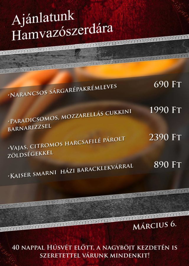 Sok szeretettel várjuk minden kedves vendégünket Hamvazószerdán, március 6-án is.